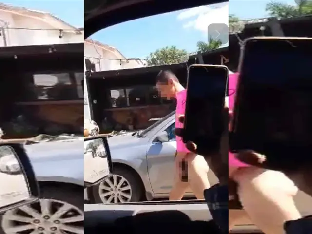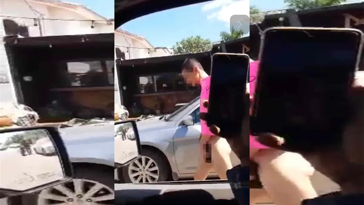En el video de escasos 12 segundos, se observa a los jóvenes caminar desnudos y cubriéndose con las manos sus partes íntimas, ya que la cartulina de color rosa donde los señalan de “ladrones y chapulines” les cubre del dorso al abdomen, además el hombre que los graba es un conductor, quien los cuestiona si seguirán robando, mientras otro tripulante dice “de chapulines”.