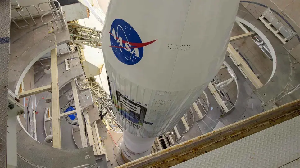 Dentro del morro en forma de cono del cohete estará colocado el Landsat 9, de 5.981 libras (2.713 kilos) de peso y fabricado por la empresa Northrop Grumman.
