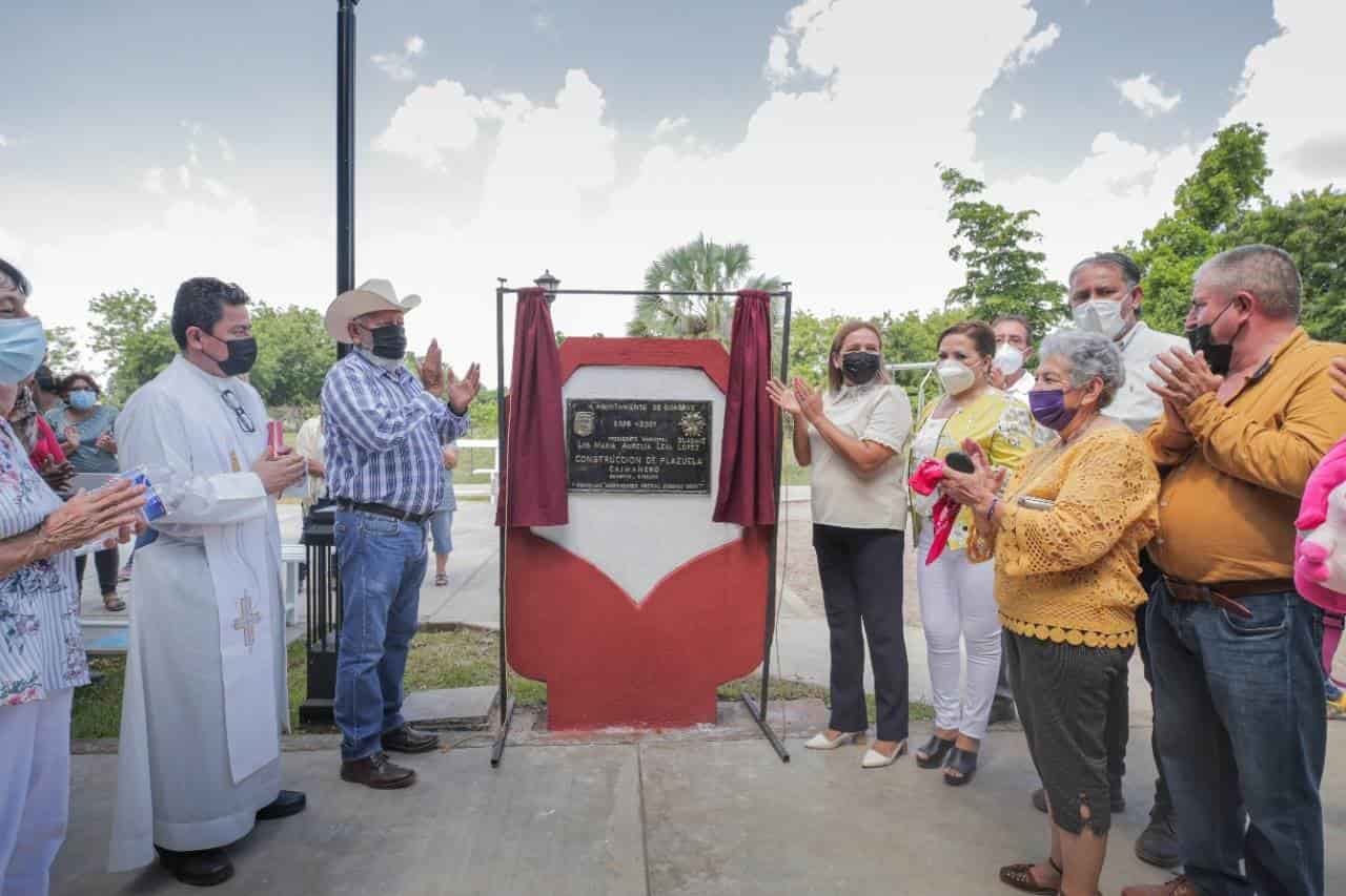 La alcaldesa entrega hermosa plazuela en El Caimanero con inversión de 1.5 mdp