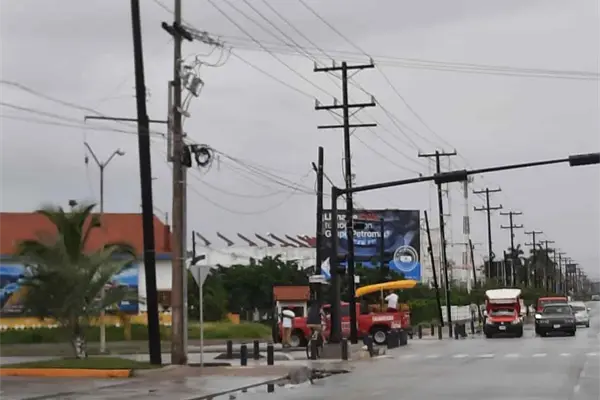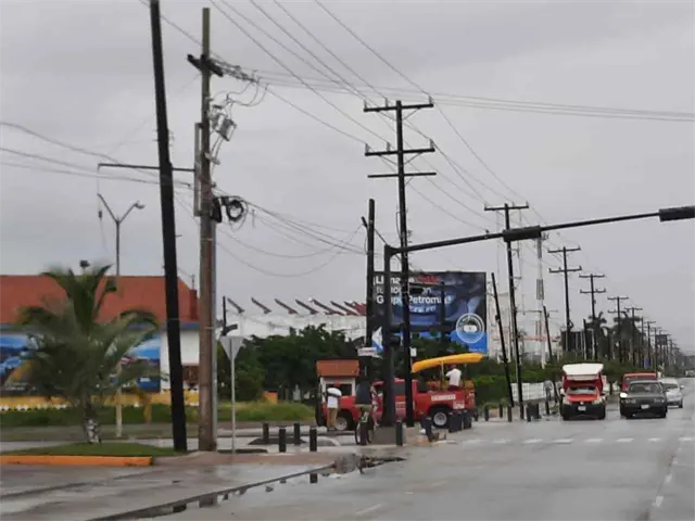 Unidades de la CFE y del escuadrón acuático recorren zonas afectadas al norte de la ciudad donde se ubican comercios y hoteles.