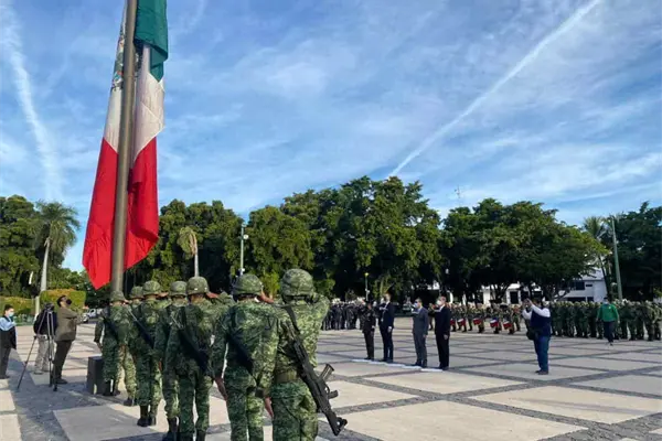 En el lugar estuvieron presentes los representantes de los poderes; Ejecutivo, Legislativo y Judicial, la Comandancia de la IX Zona Militar quienes izaron la bandera y entonaron el Himno Nacional.