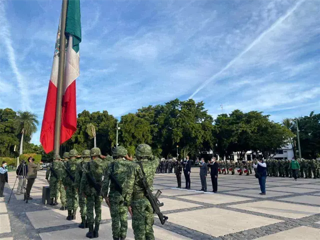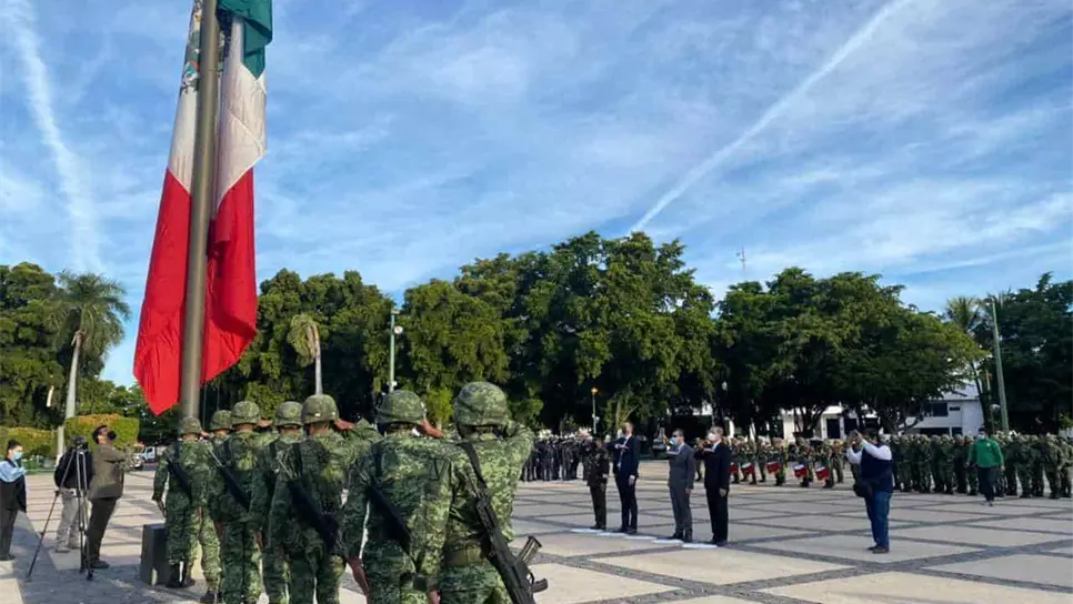 >Militares realizan Izamiento de Bandera y montan Guardia de Honor.
