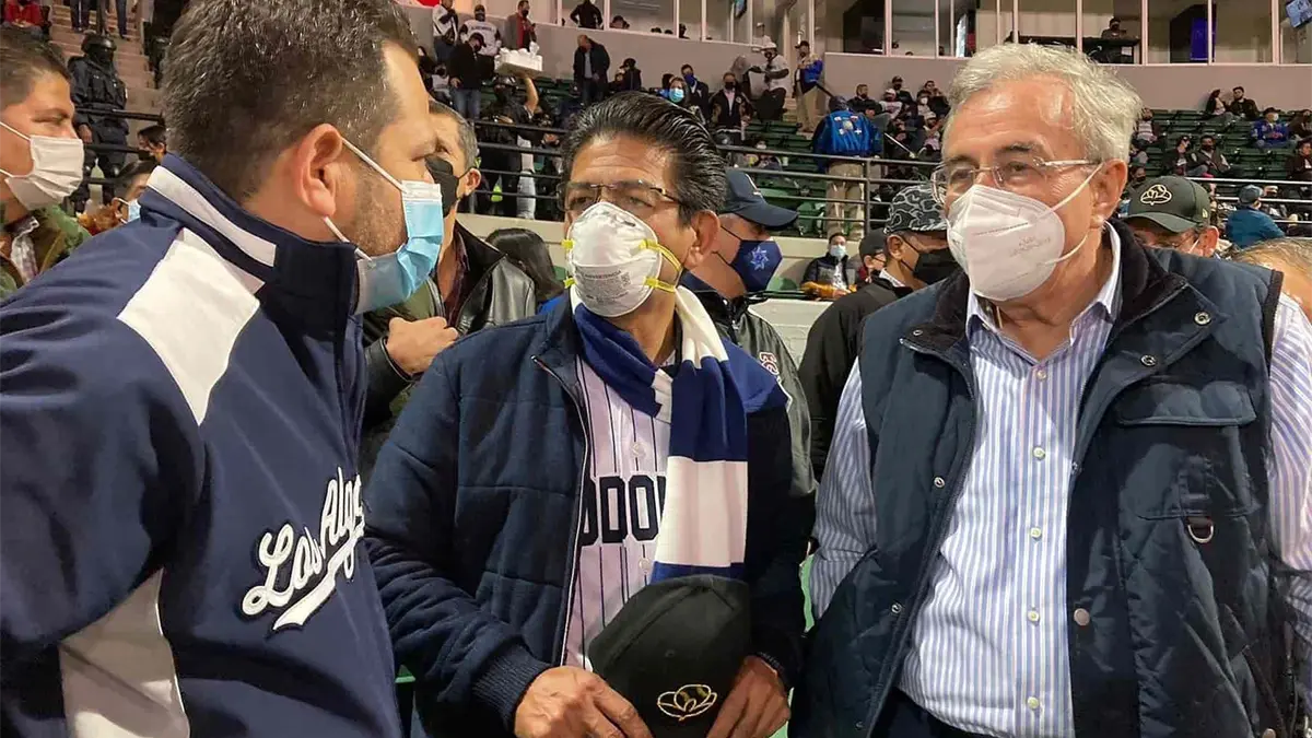 >El gobernador y el presidente municipal de Guasave acuden al Kuroda Park a la semifinal de béisbol entre Algodoneros y Tomateros.