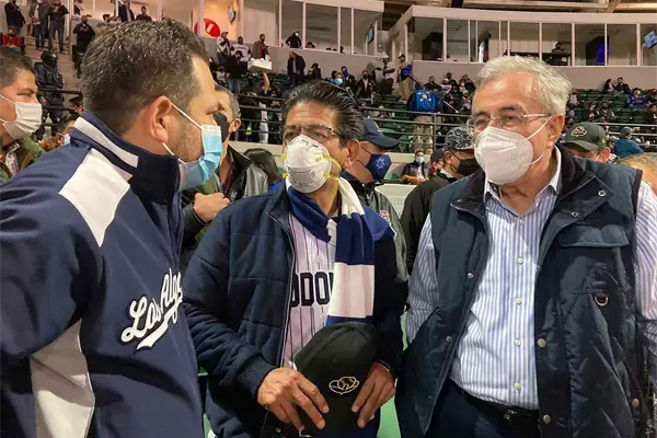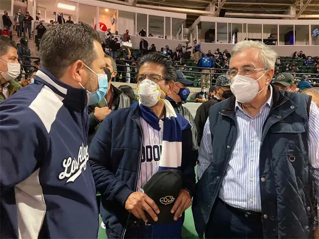 El gobernador del estado Rubén Rocha Moya y el alcalde Martín Ahumada Quintero, asistieron al sexto juego de la serie Semifinal de la Liga Arco Mexicana del Pacífico que disputaron Tomateros de Culiacán y Algodoneros de Guasave.