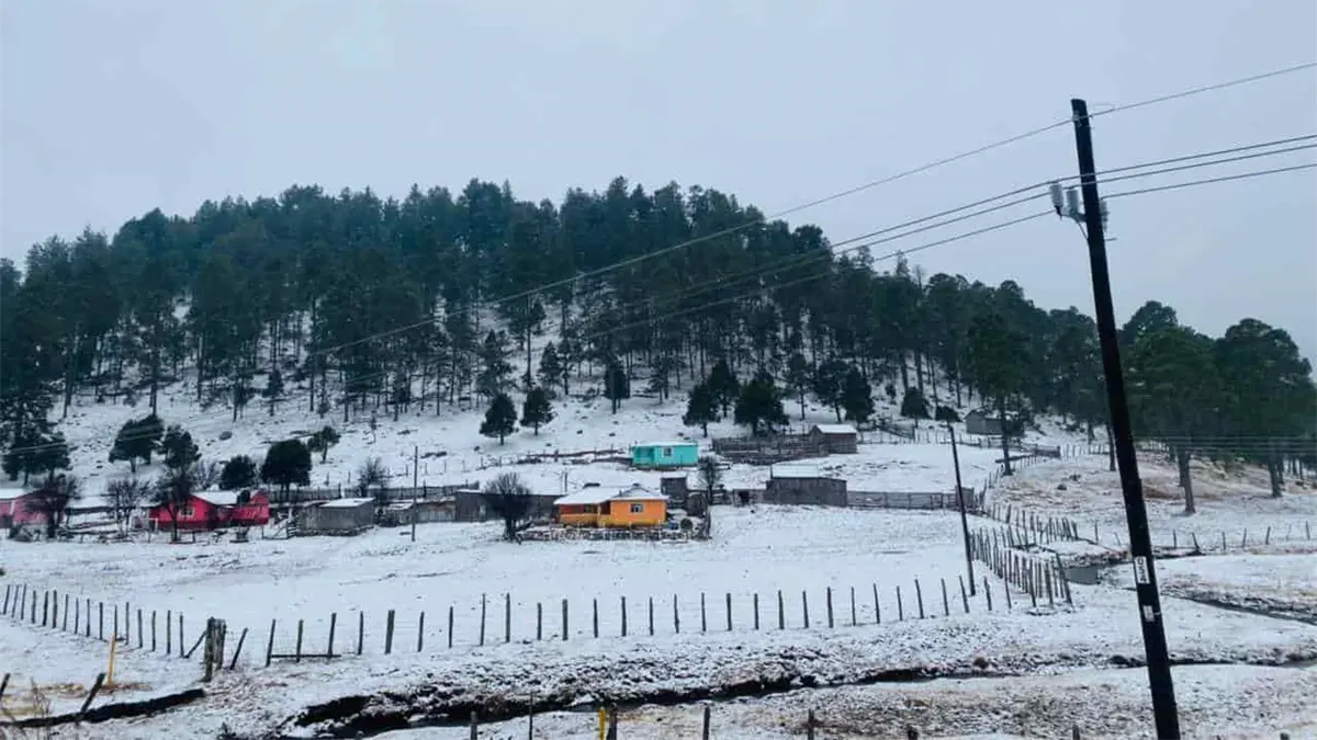 Lugares como Mexiquillo se vistieron de color blanco gracias a la gran nevada que cayó, la cual venía acompañada de temperaturas de 1 grado centígrado con sensación térmica de menos 3 grados centígrados.