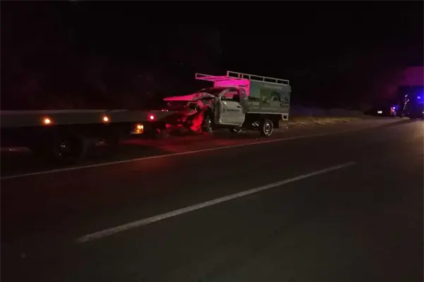 Se trata de una camioneta Nissan, de color blanco, con redilas, propiedad de conocida empresa funeraria, misma que protagonizó el choque sobre el bulevar Macario Gaxiola, en la entrada norte de la ciudad, a unos 300 metros de Las Malvinas.