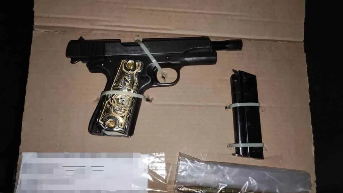 Los agentes lo alcanzaron e interceptaron, posteriormente le realizaron una revisión de rutina, pero le encontraron una pistola calibre .9 milímetros, abastecida con 8 cartuchos útiles.