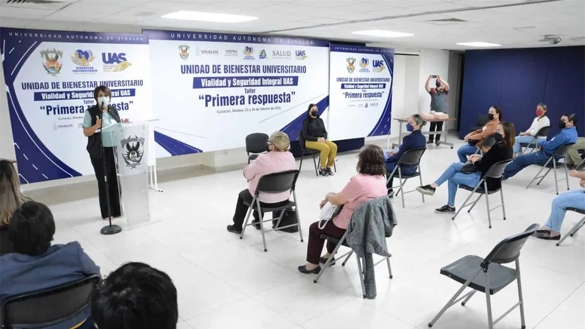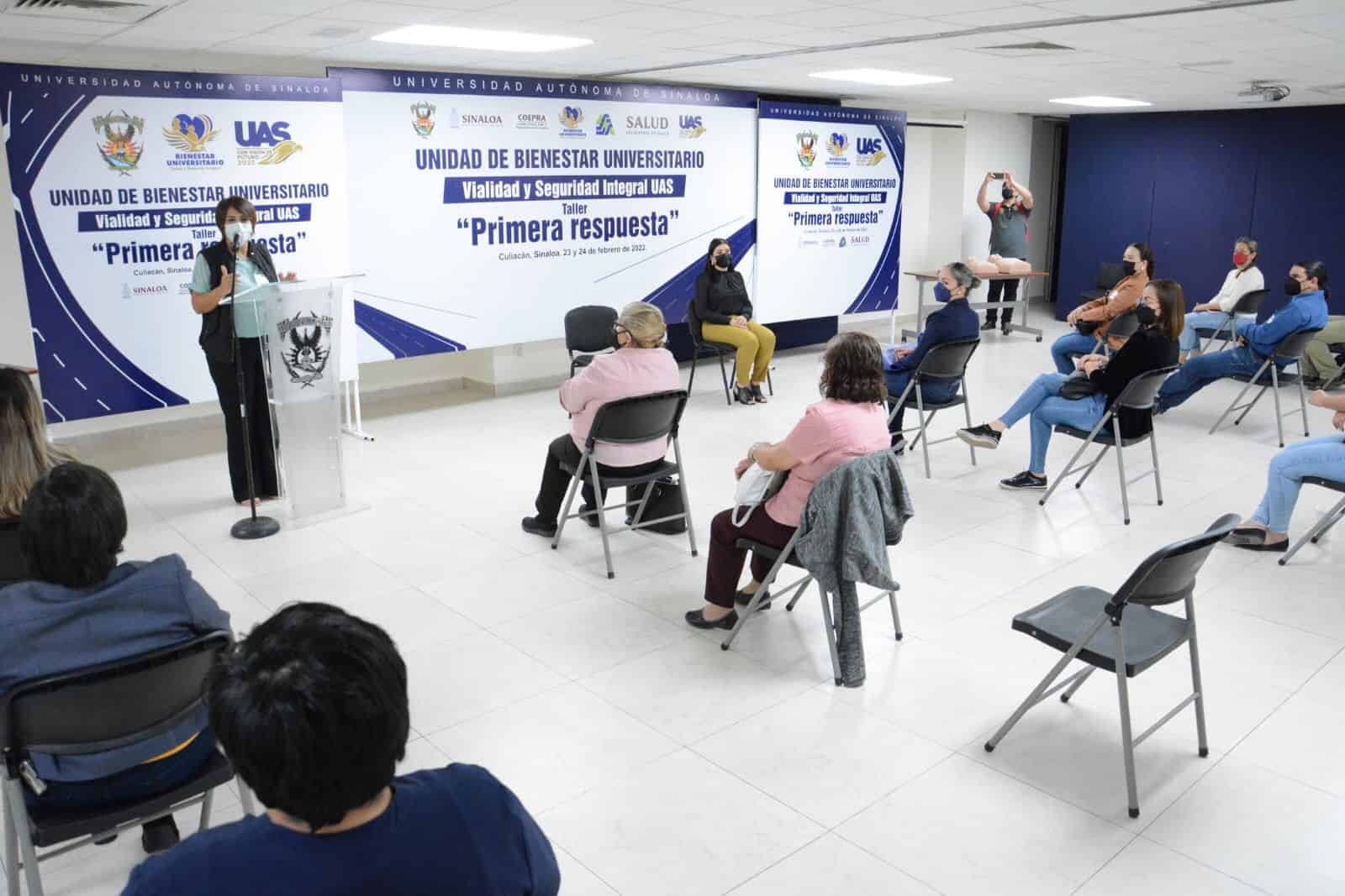 Este 23 y 24 de febrero, la Unidad de Bienestar Universitario (UBU) de la Universidad Autónoma de Sinaloa (UAS), en coordinación con la Secretaría de Salud del Estado y el Consejo Estatal para la Prevención de Accidentes (COEPRA), impartirán el taller «Primera Respuesta» a docentes y estudiantes del nivel medio superior y superior, con el propósito de capacitarlos en los protocolos y criterios generales de atención frente a situaciones de emergencias de salud.