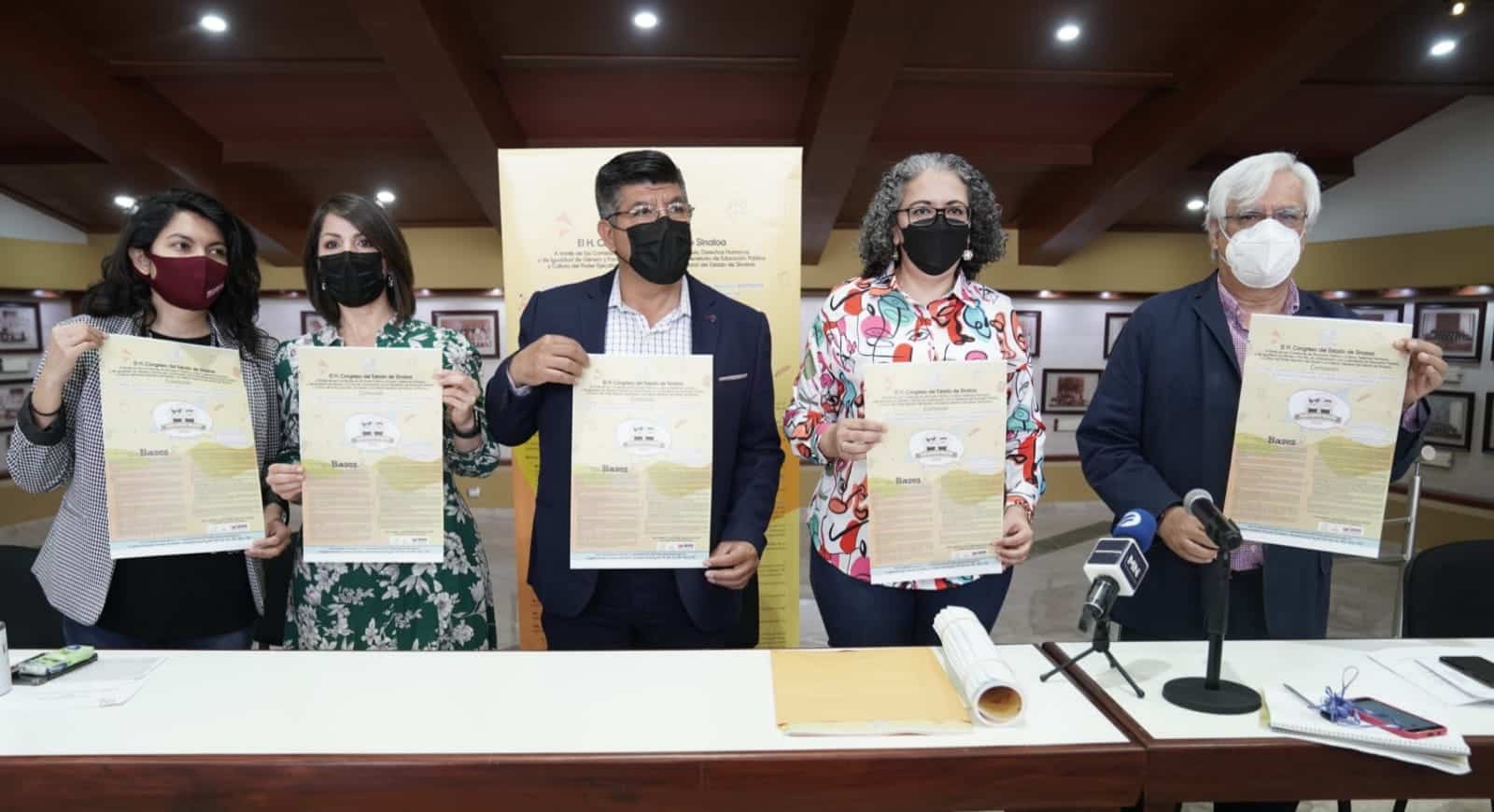 En conferencia de prensa, el diputado José Manuel Luque Rojas, Presidente de la Comisión de Educación Pública y Cultura; Almendra Ernestina Negrete Sánchez, Presidenta de la Comisión de Igualdad de Género y Familia; Graciela Domínguez Nava, titular de la SEPyC, y Karla Gabriela Peraza Zazueta, presidenta del IEES, anunciaron la nueva edición en la que podrán participar niñas y niños que cursan el quinto año de primarias públicas y privadas.