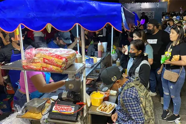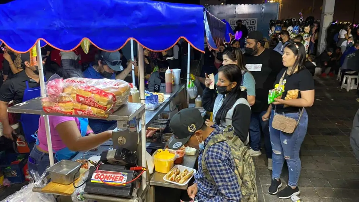 Hot dogs, elotes, tostitos con ceviche, salchitacos, sabritas, cronchos y hasta hot cakes para el frío de estas fechas.