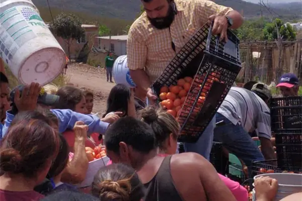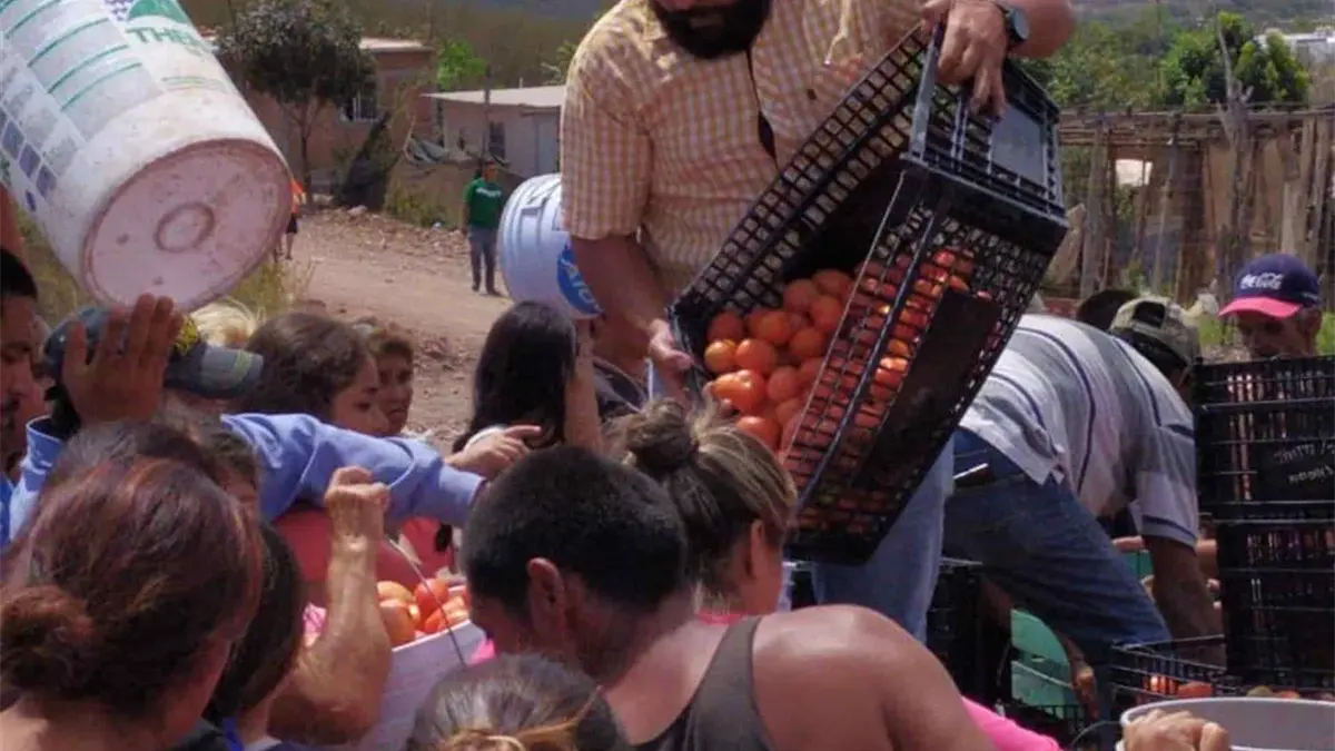 Fundación Produce Sinaloa invita a las familias de escasos recursos de la comunidad de Aguaruto a llevar tomate y chile de manera gratuita.