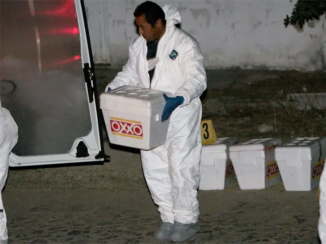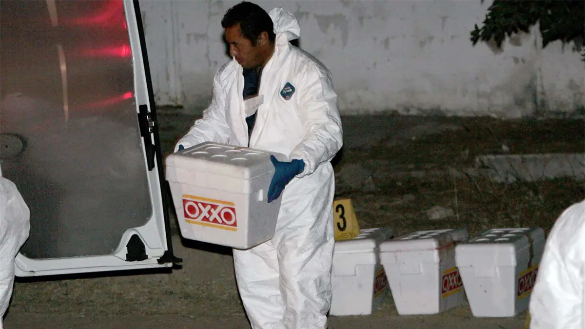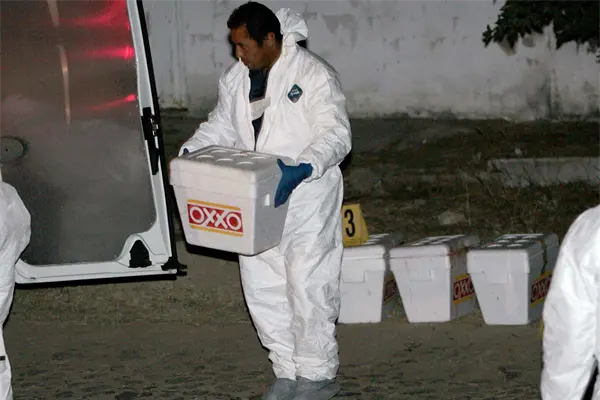 En el interior del coche había bolsas con restos humanos, presumiblemente correspondientes a las personas que fueron decapitadas.