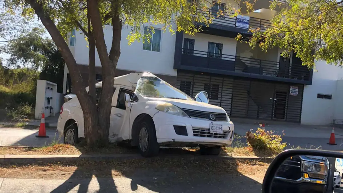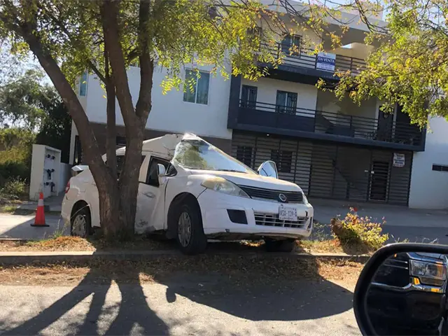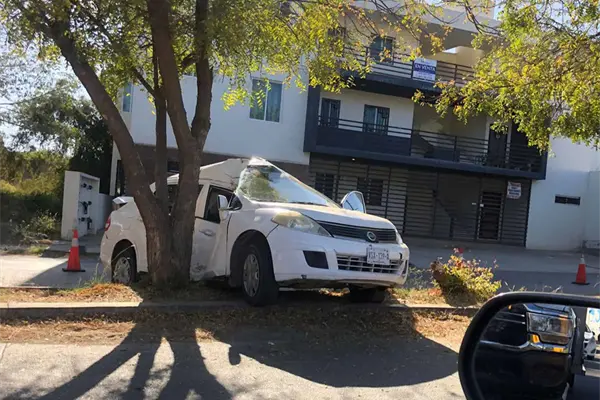 El vehículo Nissan Tiida, de color blanco, era conducido sobre la avenida Francisco I. Madero y en una pronunciada curva el conductor perdió el control y se estrelló contra un árbol del camellón central.