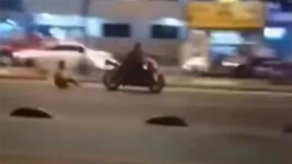 Un vídeo, que circula en redes sociales, muestras el momento exacto cuando el conductor de la moto realiza la maniobra y la mujer cae al pavimento bruscamente.