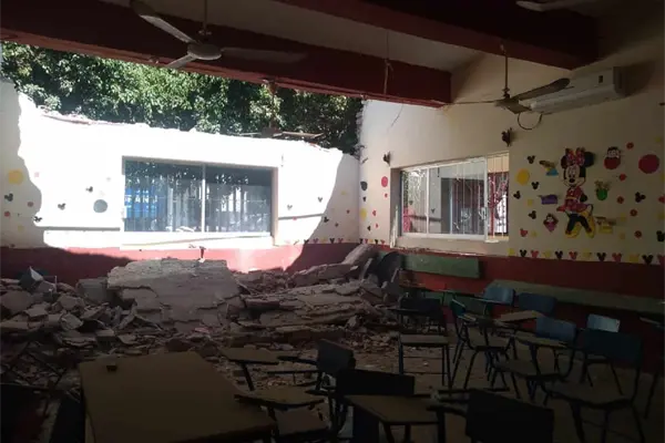 Demolerán techos de 14 salones de primaria que colapsó en Villa Unión
