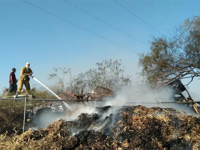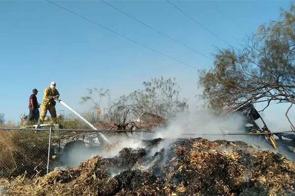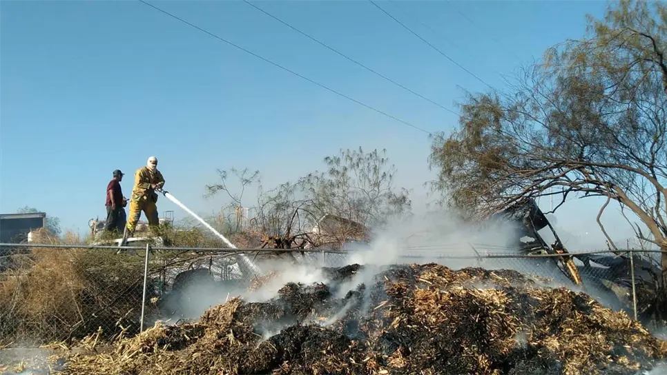 Lo que comenzó como un incendio de maleza en un predio enmontado en plena cabecera municipal de El Fuerte, terminó con daños en la ganadera, pues el fuego se propagó y terminó consumiendo pacas de frijol - alimento para ganado.
