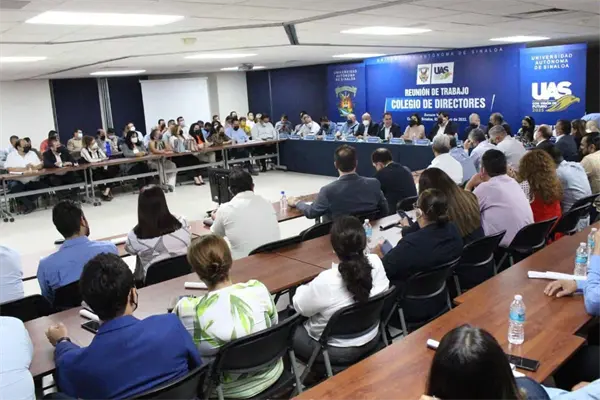 Con el propósito de darle continuidad al ejercicio de la comunicación directa e informar de temas diversos y actividades que se llevan a cabo en la institución, el rector de la Universidad Autónoma de Sinaloa (UAS), Jesús Madueña Molina, encabezó una reunión de trabajo con los directores de unidades académicas de nivel medio superior y superior de las cuatro unidades regionales y con los directores de todas las áreas administrativas.