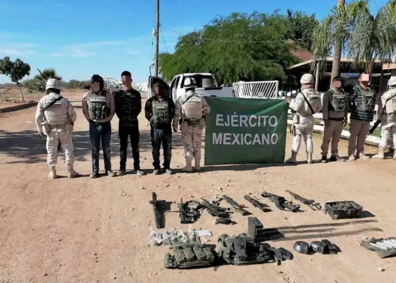Elementos de la Secretaría de la Defensa Nacional (Sedena) detuvieron a un total de cinco hombres en posesión de armamento, droga y equipo táctico en la ciudad de Caborca, Estado de Sonora.