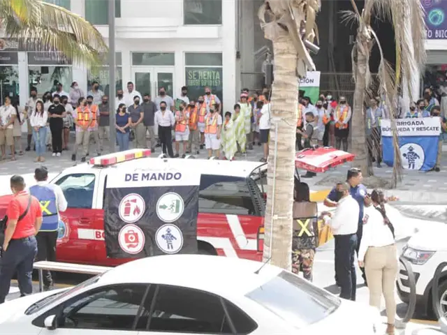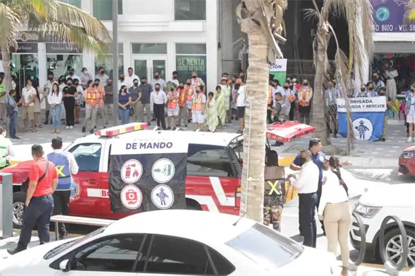 Se movilizan cuerpos de rescate y auxilio ante alarma de incendio en hotel, por simulacro