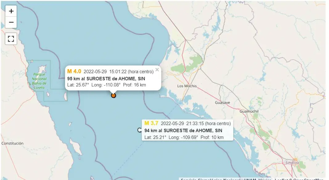 >En las 24 horas se detectó un sismo de 4.0 grados al suroeste de Ahome.