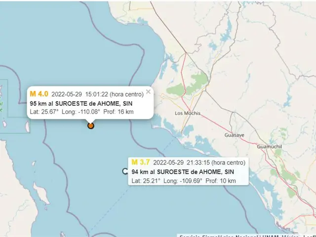 Uno de ellos fue percibido el pasado domingo, a las 3:00 de la tarde, a 95 kilómetros al suroeste del municipio de Ahome con una magnitud de 4.0 grados.