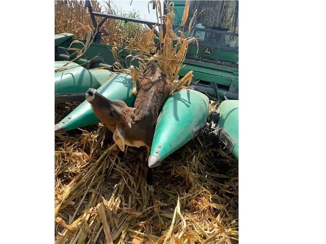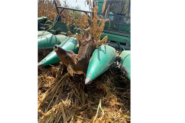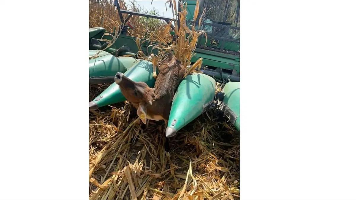Becerro termina prensado en una trilladora