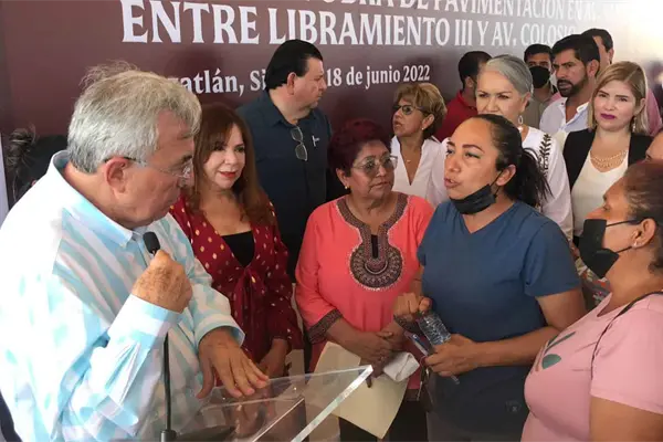 >Los vecinos abordaron a Rubén Rocha Moya en su visita a Mazatlán.