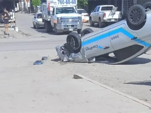 Tras el golpe, la unidad de alquiler quedó llantas arriba y la camioneta Urban también resultó con severos daños.