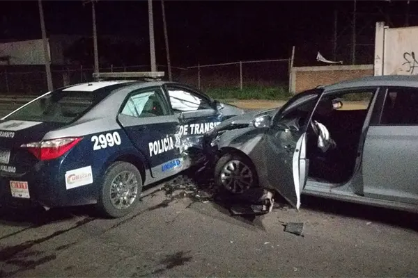 Se trató de un conductor que se impactó contra el costado derecho de una patrulla de tránsito municipal que se encontraba resguardando la zona de entrada a dicho paso deprimido.