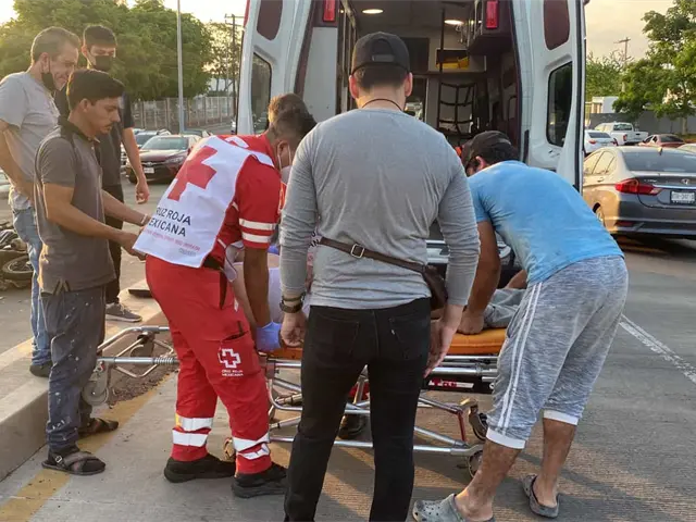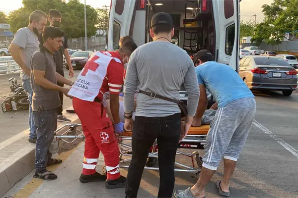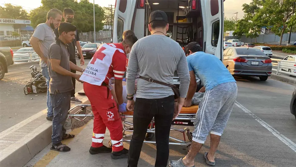 Dos motociclistas sufrieron heridas de consideración, luego de que el conductor de un automóvil se quedara sin frenos y los arrollara cuando circulaban sobre el puente del buelvar Rolando Arjona, en el sector Desarrollo Urbano Tres Ríos, en Culiacán.