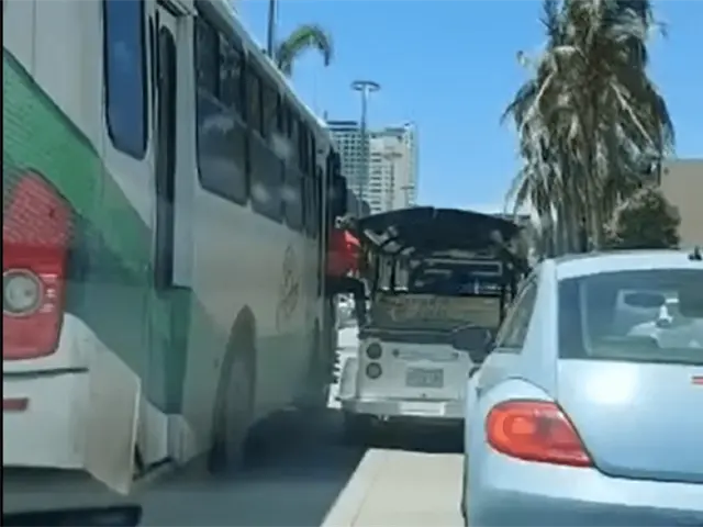 Los hechos ocurrieron en plena franja turística, en la avenida Camarón Sábalo de la Zona Dorada de Mazatlán ante los ojos de muchos turistas e incluso los pasajeros del camión quienes vieron todo desde arriba de la unidad.