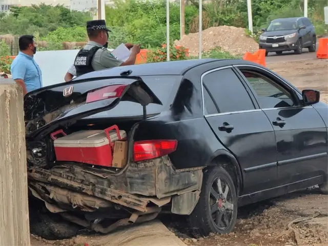 Un agente de la Policía Estatal Preventiva (PEP) que se encontraba en su día libre, y su esposa con nueve meses de embarazo; sufrieron un aparatoso accidente al ser chocados por alcance por una camioneta cuando se trasladaban en su vehículo a la altura del Libramiento Sur Benito Juárez, conocido como La Costerita, en Culiacán.