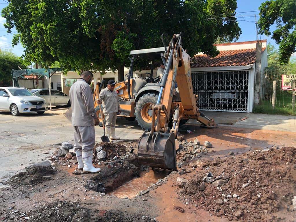 Personal de la Junta de Agua Potable y Alcantarillado del Municipio de Ahome reparó una megafuga de agua potable por la calle Tenochtitlán, en la colonia Bienestar, preciso Raúl Pérez Miranda, Gerente General de JAPAMA.