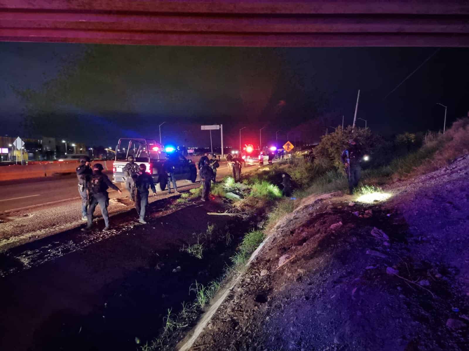 La diligencias donde quedó el cuerpo del mando policías se llevaban acabo cuando se informó a través de los radios la presencia de dos bultos en la carretera mencionada, justo debajo del puente del distribuidor vial El Trébol.