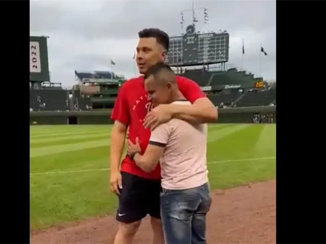 Joey Meneses y Alex Romero se reencontraron en el Wrigley Field de Chicago, donde ambos se dieron un abrazo especial, por el logro que ha tenido el primera base después de años de haber luchado por conseguirlo.