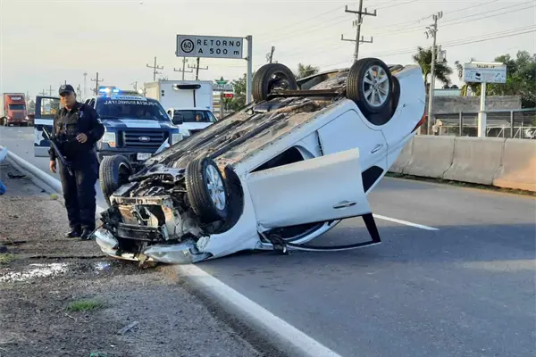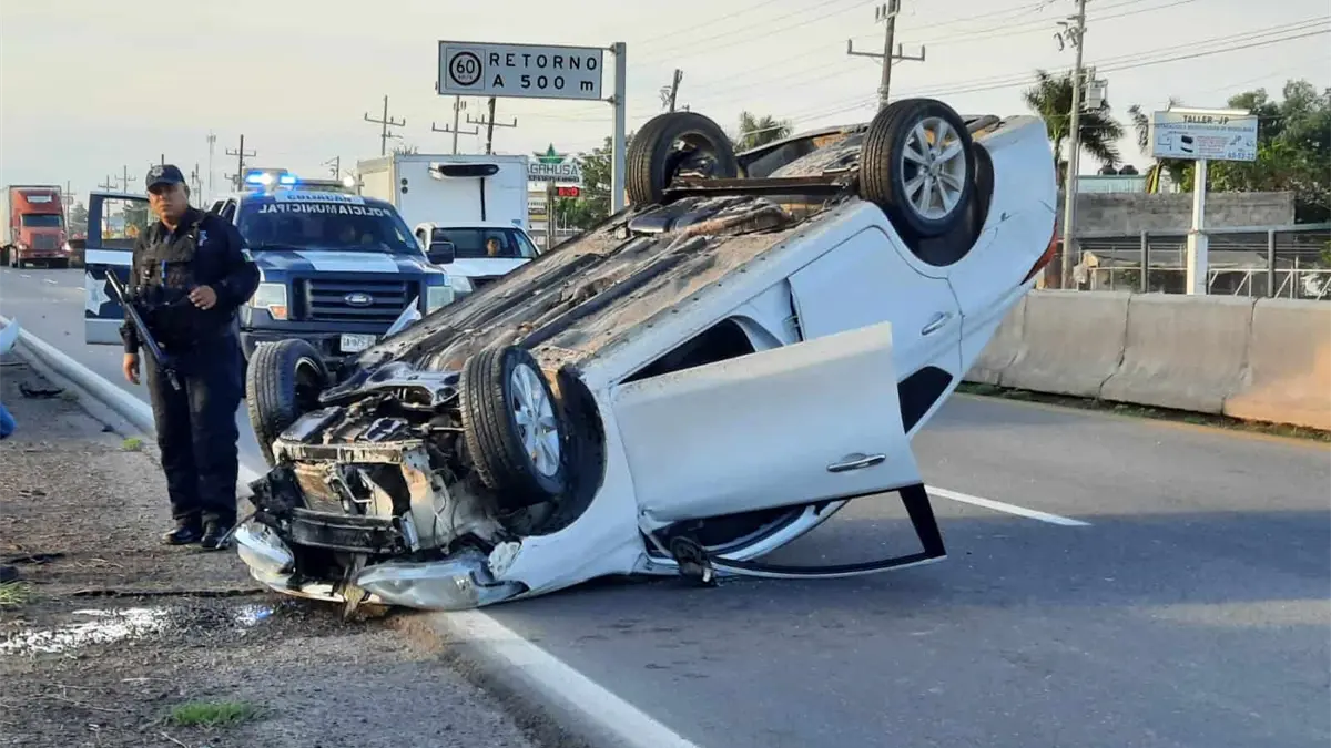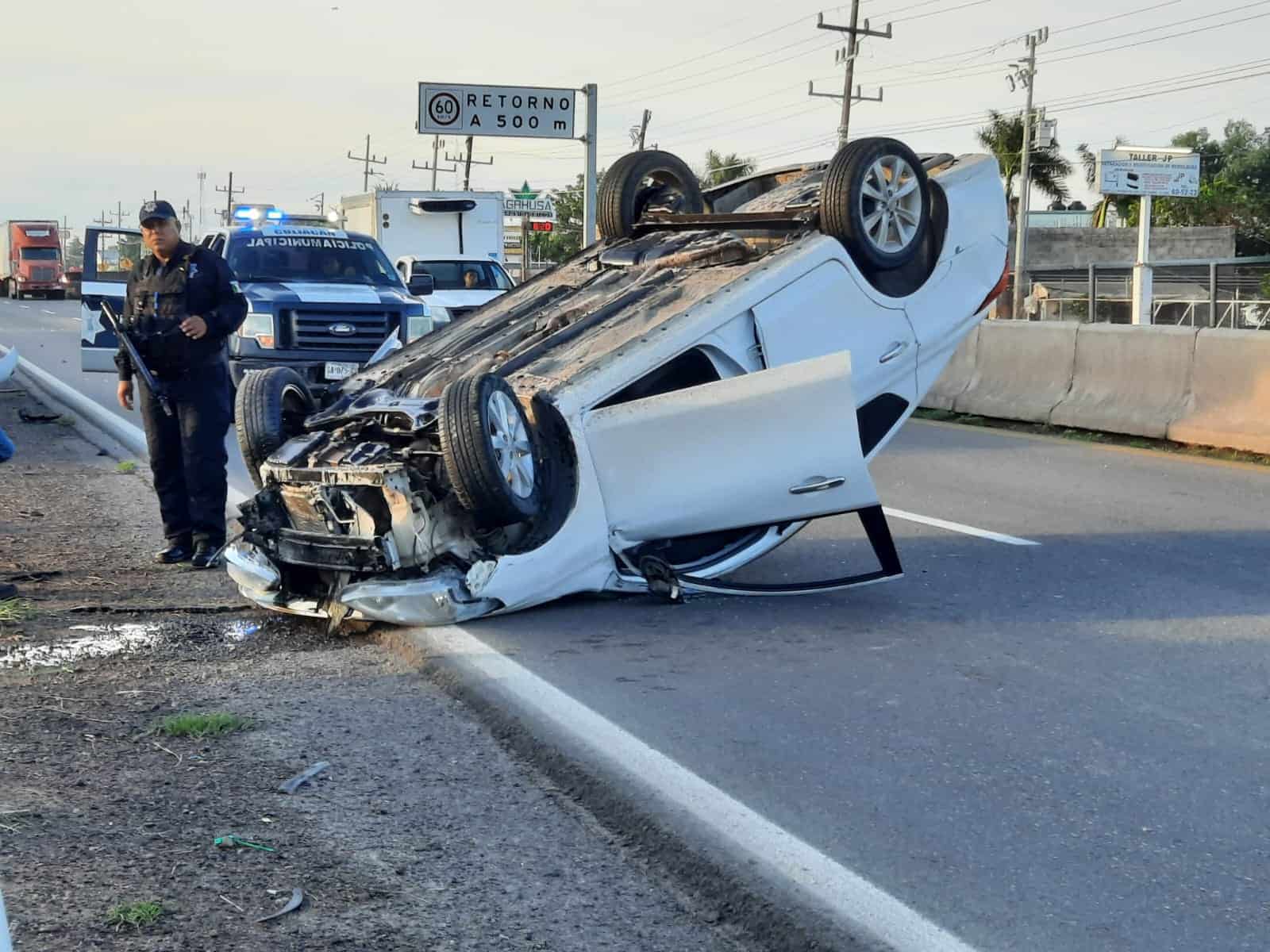 El hombre, quien no fue identificado, circulaba por el carril de norte a sur en un vehículo blanco de la línea Nissan Versa y a la altura de el Campo El Diez, perdió el control y volcó quedando con las llantas hacia arriba.