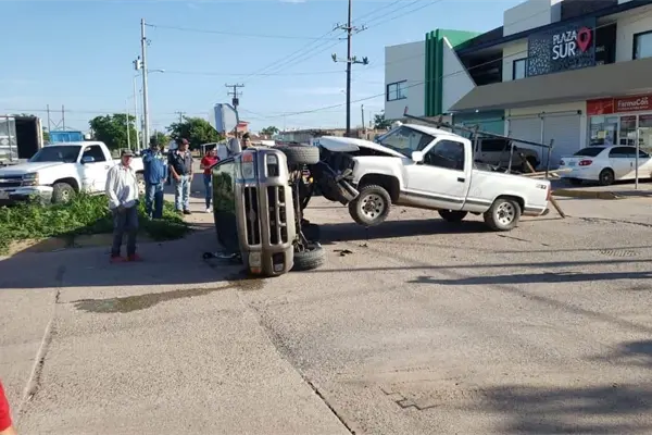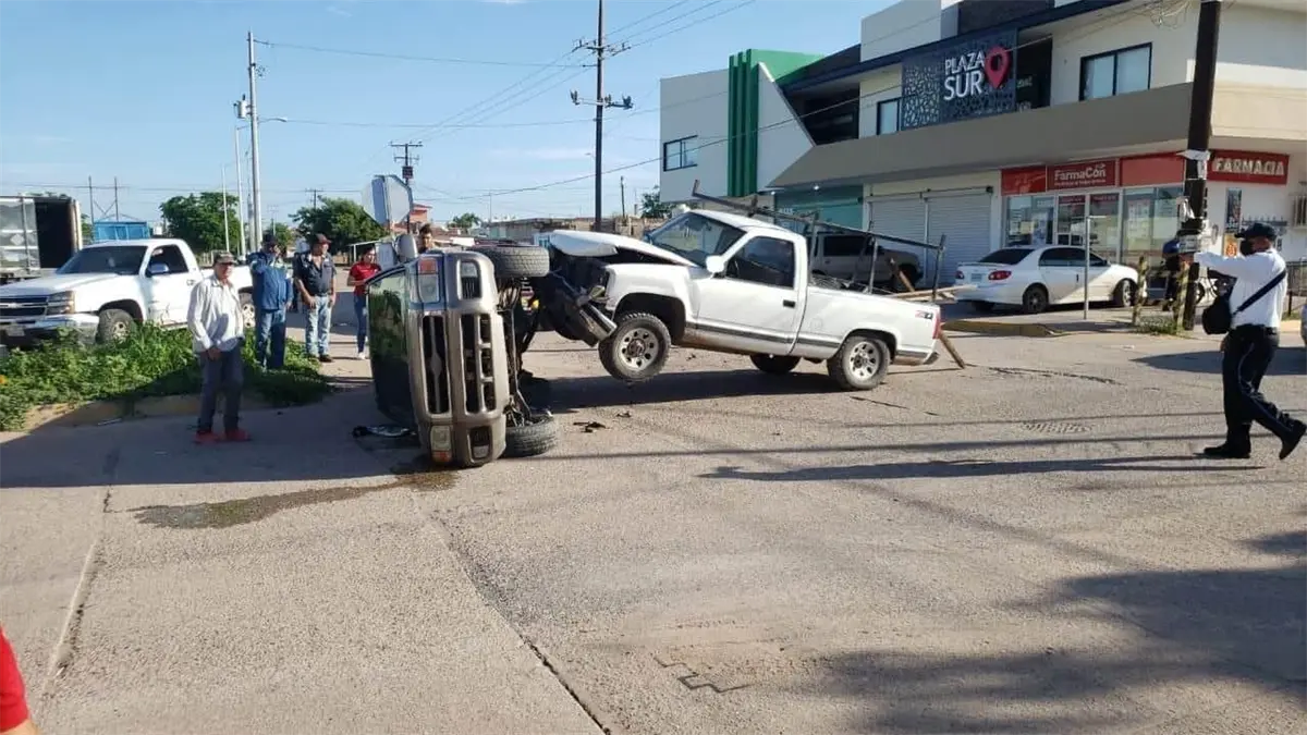 Importantes daños materiales y una persona solo con algunos raspones, fue el saldo de un aparatoso choque que terminó en volcadura, registrado la mañana de este lunes en la colonia Magisterio de la ciudad de Guamúchil, municipio de Salvador Alvarado.