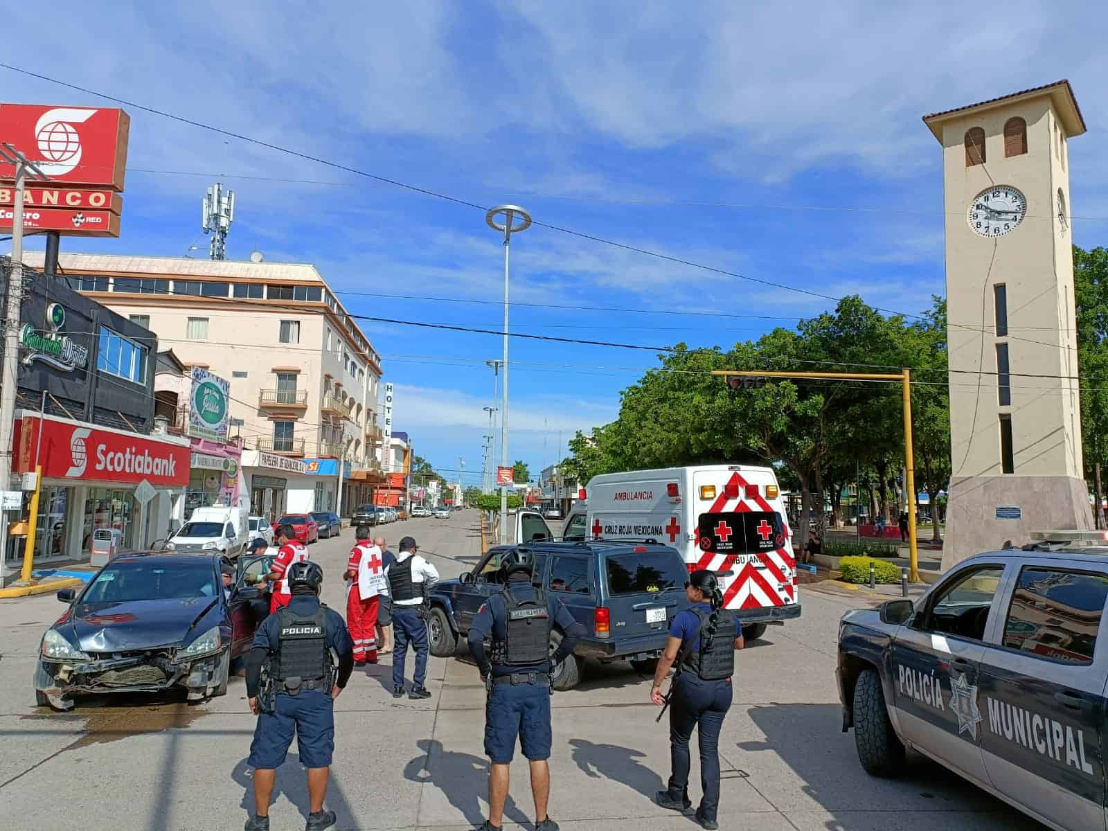 Choque en el Centro Guamúchil deja dos lesionados y daños materiales