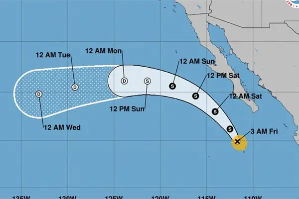 Destacó que este fenómeno se alejará del país para este sábado, dejando lluvias de 50 milímetros en Sinaloa y de hasta 150, en Baja California.
