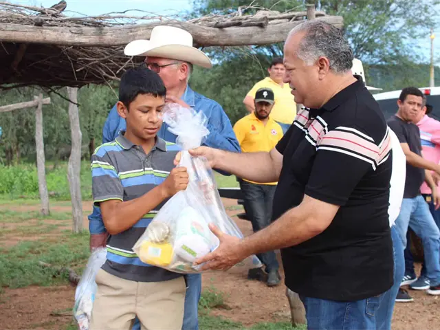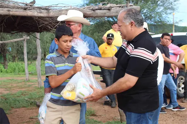 El alcalde de Sinaloa, Rolando Mercado y la presidenta del Sistema DIF Municipal, Verónica Guadalupe de la O Miranda, llevaron a cabo este domingo una jornada asistencial, para entregar apoyos alimenticios a familias de las comunidades de Gallo Nuevo, Gallo Viejo, y Los Tablones.
