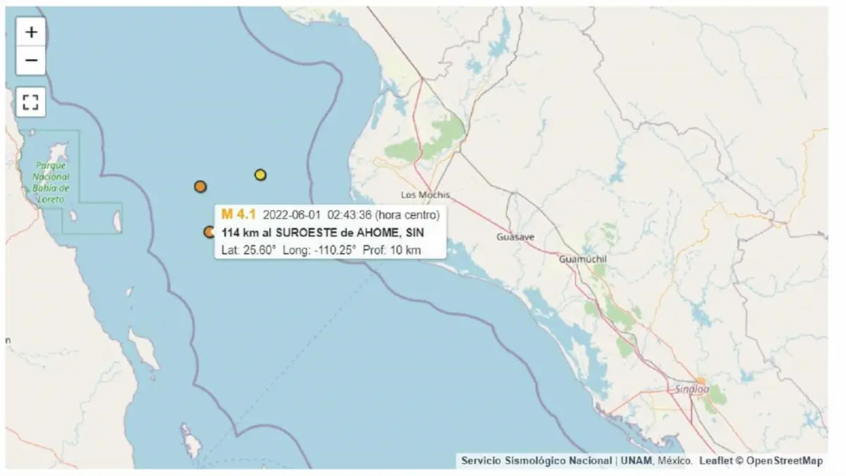 - Se registran dos sismos frente a las costas de Ahome