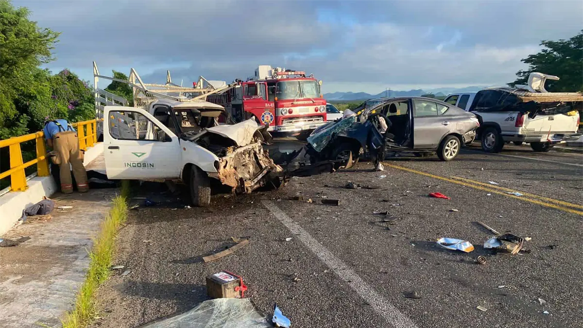 Seis personas lesionadas y cuantiosos daños materiales, fue el saldo de un aparatoso encontronazo registrado esta mañana entre dos unidades, mientras circulaban sobre la carretera Internacional México 15, a su paso por el municipio de Mocorito.