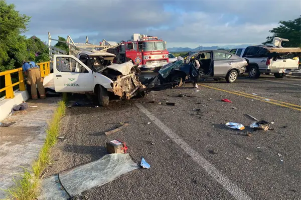 Al momento se desconoce cómo sucedió el accidente, pero se presume que se debió a la invasión de carril contrario, en el que tras el fuerte impactó, terminaron con severos daños en su carrocería; el vehículo quedó atravesado en carretera y la camioneta casi en la orilla.