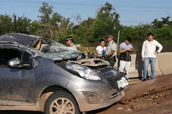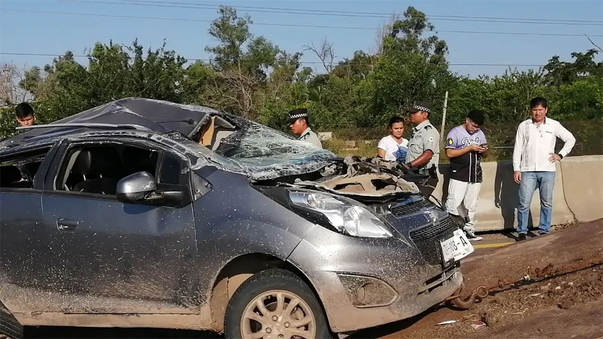 El accidente ocurrió cuando el conductor del auto Spark perdió el control del volante y volcó sobre la carretera Culiacán-Eldorado, lo que provocó que posteriormente un camión de jornaleros lo impactará y que una camioneta Nissan X-Trail chocara contra el camión.