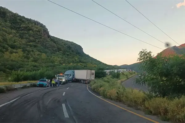 Largas filas de vehículos y tráileres que se dirigen hacia el norte y daños en la caja de un tractocamión, fue el saldo de un aparatoso accidente que terminó en una volcadura, registrada esta mañana sobre la carretera Internacional México 15, a su paso por los cerros de Barobampo; milagrosamente el chofer resultó ileso