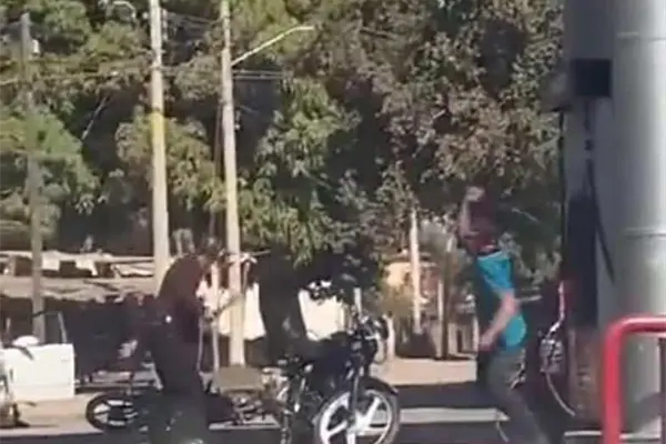 Según se muestra en el video, los involucrados llegaron a esa gasolinera en al menos dos motocicletas, de las cuales una estaba tirada junto a las bombas de la gasolinera, mientras los jóvenes se enfrentan y otros más corren para ponerse a salvo, pero dejan en el lugar una motocicleta, misma que termina con daños, puesto que fue macheteada por los sujetos en cuestión.