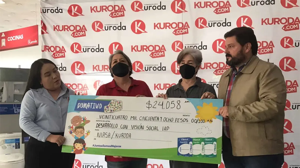 Grupo Kuroda y Niasa, entregan donativo de $24,058 pesos, en campaña «Un Guante Muchas Manos», una alianza en donde se brinda apoyo a las personas que residen en el programa «Estancia Lupita», un hogar encabezado por Desarrollo con Visión Social.