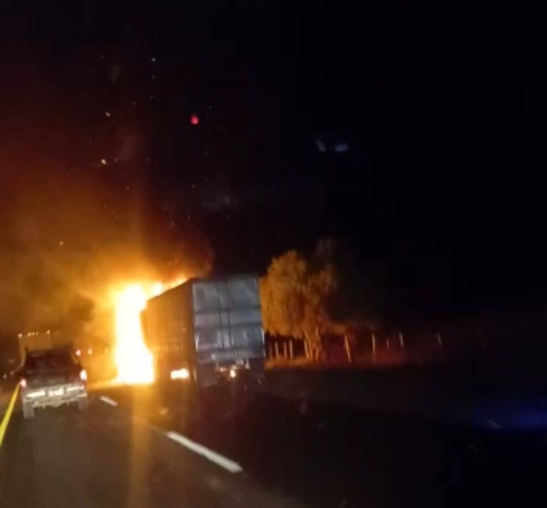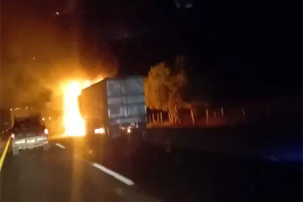 Cuando circulaba sobre el carril de norte a sur de la Maxipista Culiacán-Mazatlán, un tráiler se empezó a quemar repentinamente hasta que las cajas de la unidad de carga fueron arrasadas por el fuego, el cual presuntamente fue provocado por una falla mecánica.