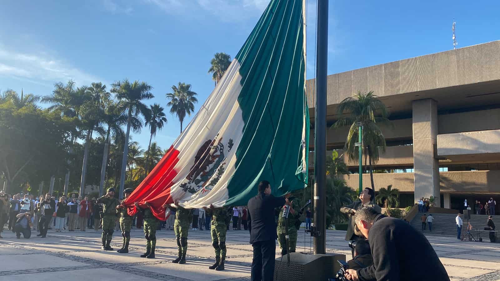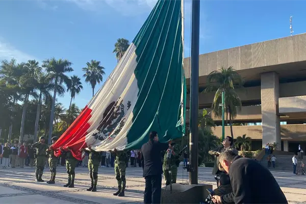 La bandera se elevó a media asta, mientras elementos de la Policía Municipal, Estatal, Guardia Nacional y Ejército Mexicano.