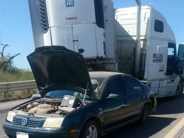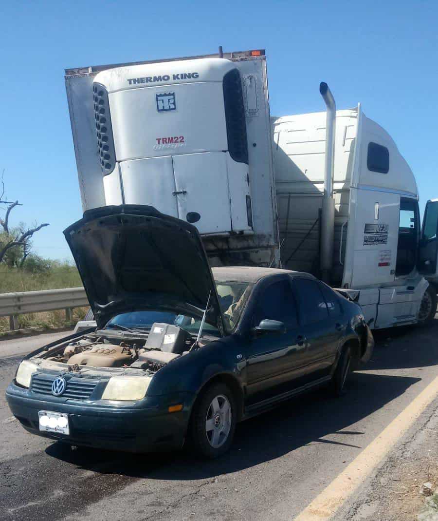 El hecho fue protagonizado por un tractocamión de la marca Volvo, doble remolque, color blanco, modelo 2011, con placas de circulación 79-AS-7B del Servicio Público Federal y un vehículo de la marca Volkswagen, línea Jetta, de color verde oscuro, modelo 2001, con placas de circulación VMV-54-69 del estado de Sinaloa.